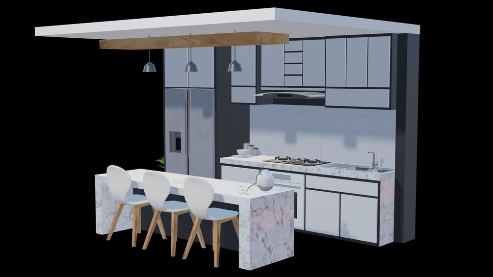 All render settings and materials are set up in the Blender file. Just choose a camera angle and the scene is ready to render